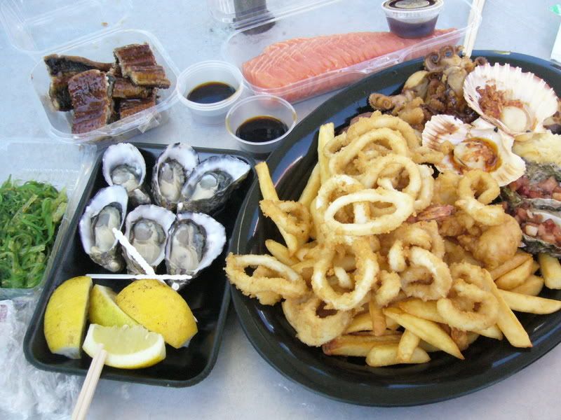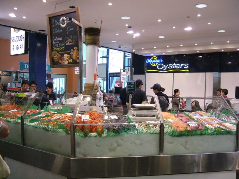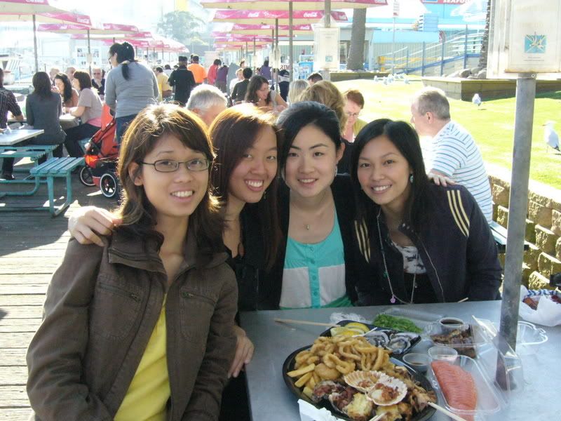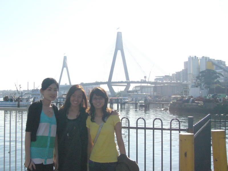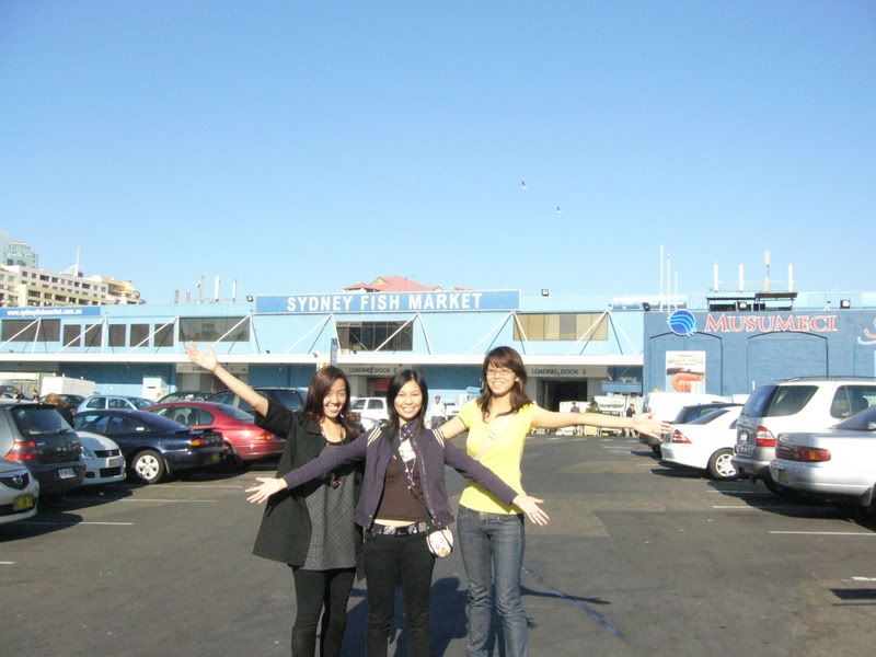 so we left blue mountains and drove back to meet sylvia for dinner. too bad she's got classes... couldn't join us. went for dinner at makoto restaurant. typical jap conveyor belt kinda food... but only nicer! Next dae... went to the ever-so-popular sydney fish market! there was a wet market.. and eating place. so much variety... all sorts of seafood. it was such a shiOk meal! had my fav salmon sashimi.. so fresh and cheap! yUm YuM~ walked along a short jetty with boats anchored ard. juz love the weather.
