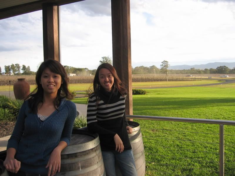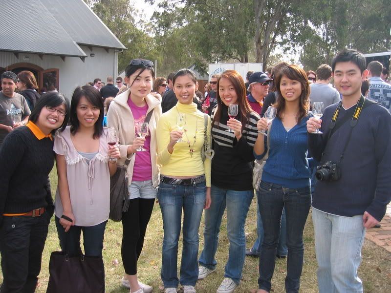 so after dinner... we drove past kings cross to look-see. its something like geylang... onli more westernized.. keke next day was another short road trip with sylvia's frens to hunter valley. on the way, ate hungry jacks aka burger king for breakfast. arrived at this happening open field... with lotsa pple dancing, gathering, drinking wine & relaxing. its the wine fest! wanted to see vineyards... and maybe the process of wine-making. but all were dried up...wrong season. so we did a little wine tasting before heading to tatler for lunch. kinda high class kinda food... coz sylvia & her frenz were upperclass rich. but we all shared... so the cost was spread out...pHew. hahaha oh... the choc pudding dessert was supeRb manz. too nice to be trueeEee....