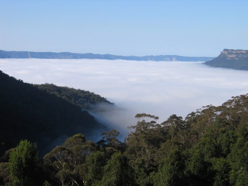 next morning had tune bread for breakfast before making our way to scenic world. took the railway ride down... which they refuse to sit in front! it was so slow... but steep. then went on the cableway to go back up... above mountains, trees & clouds. sight-seeing mostly... look at the clouds! we're soOo high....