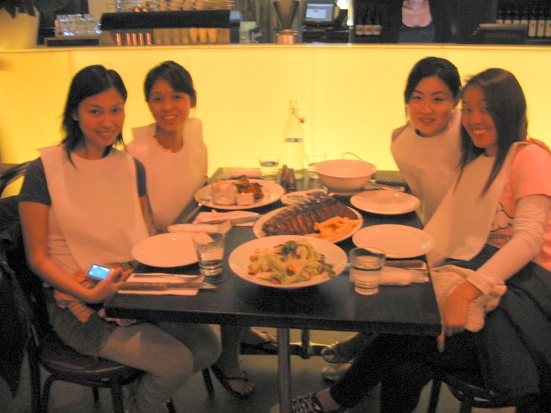 walked around the shops nearby b4 they close. it gets dark realli early.. like 5+pm. had hurricanes for dinner... huge long ribs. they made us wear bibs... wahahha thats the result of 3 carnivores... neo is the chicken-only-almost-vegetarian. haha