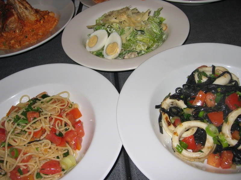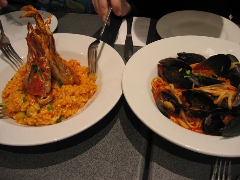 sylvia planned a nice italian dinner place called Sapore in leichhardt. yes... two "h"... i didn't spell it wrongly ok. hahaha its like a "little italy" in sydney. ordered to share amongst 5 of us.. including sylvia's sis. had the oh-so-yummy risotto (most left) which is like mui-fan... chewy-type of rice. then it was some pastas and salad. the squid-ink pasta (most right) was nice! juz that it doesn't realli look appealing coz of the colour. gona make u all drool now...