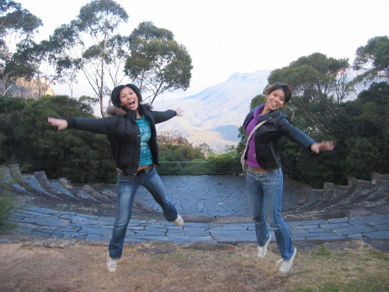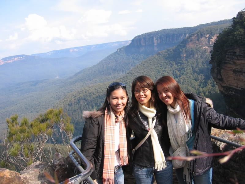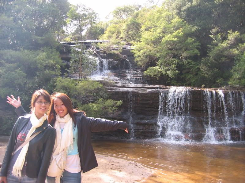 3rd day morning... road trip to blue mountains! the drive was a long few hrs... but they kept me entertained. neo handled the navigator while leong kept the back seats neat. so much stuff... but she managed to "secure" them. she was the map reader too... in case the navigator went crazy.. which it did.. a few times. hahaha stopped along the way to enjoy the scenery. reached wentworth falls after guidance from nice pple... we had to hike a little in order to reach the falls.